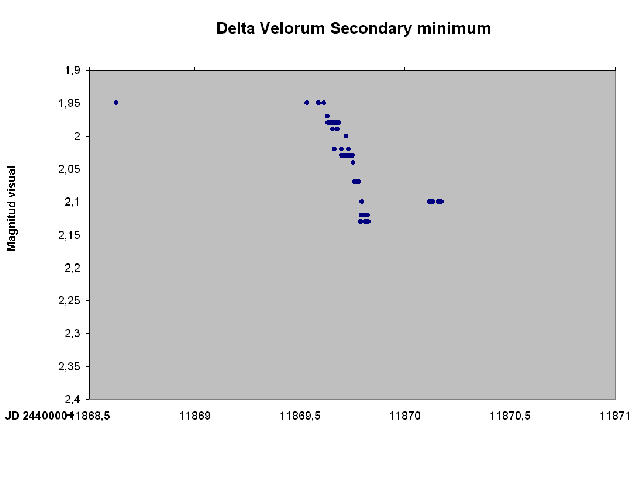 Delta Velroum lightcurves for both primary and secondary eclipses. Most of the observations are from LIADA, plus Albert Jansen and Michael Mattiazzo data that helped a more complete coverage. Thanks. Sebastian. --- Outgoing mail is certified Virus Free. Checked by AVG anti-virus system (http://www.grisoft.com). Version: 6.0.219 / Virus Database: 103 - Release Date: 05/12/00
