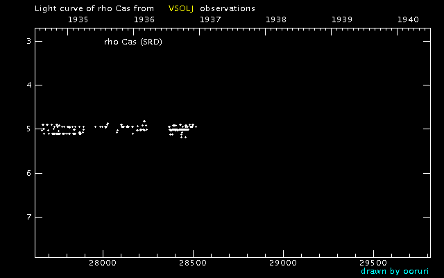Light Curve of rho Cas (rho Cassiopeiae) from the VSOLJ database (1935-1939)