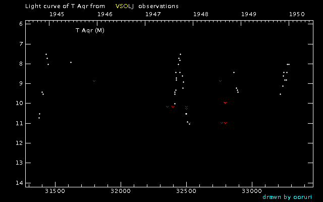 Light Curve of T Aqr (T Aquarii) from the VSOLJ database (1945-1949)