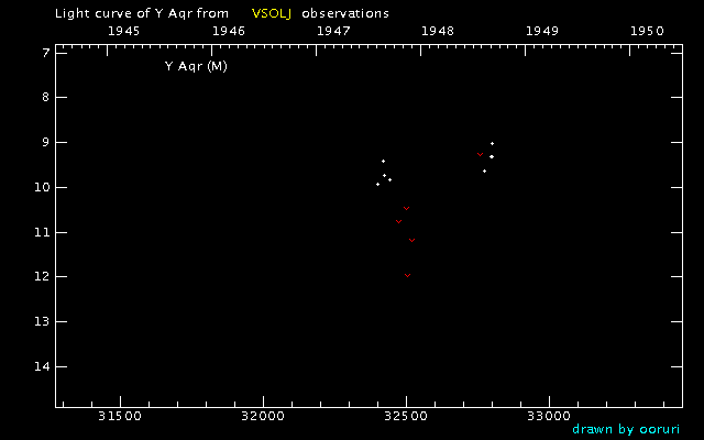 Light Curve of Y Aqr (Y Aquarii) from the VSOLJ database (1945-1949)