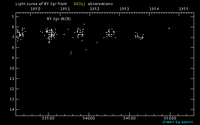 Light Curve of RY Sgr (RY Sagittarii) from the VSOLJ database (1950-1954)