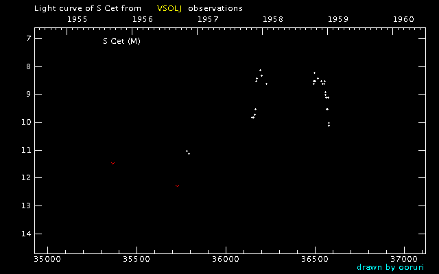 Light Curve of S Cet (S Ceti) from the VSOLJ database (1955-1959)