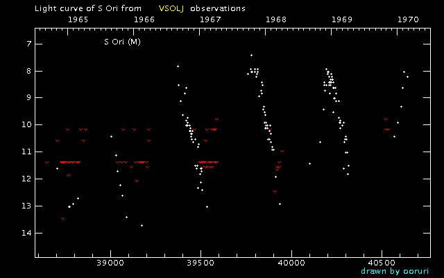 Light Curve of S Ori (S Orionis) from the VSOLJ database (1965-1969)