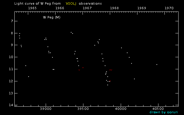 Light Curve of W Peg (W Pegasi) from the VSOLJ database (1965-1969)