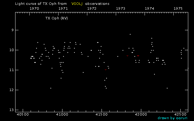 Light Curve of TX Oph (TX Ophiuchi) from the VSOLJ database (1970-1974)