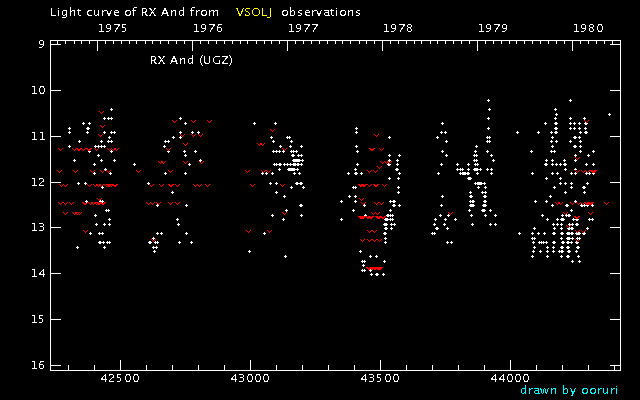 Light Curve of RX And (RX Andromedae) from the VSOLJ database (1975-1979)