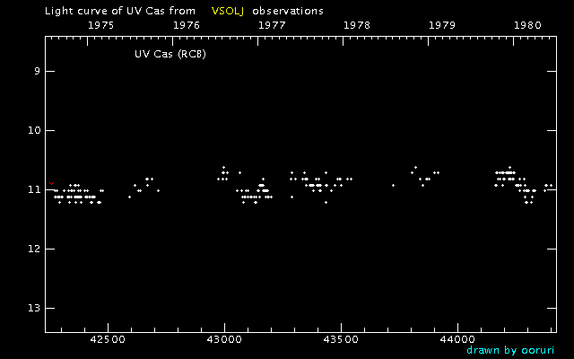 Light Curve of UV Cas (UV Cassiopeiae) from the VSOLJ database (1975-1979)