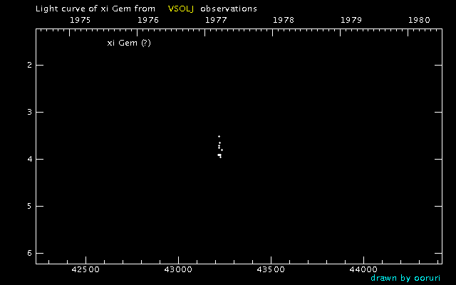Light Curve of xi Gem (xi Geminorum) from the VSOLJ database (1975-1979)