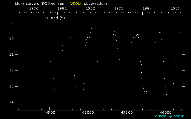 Light Curve of BG And (BG Andromedae) from the VSOLJ database (1980-1984)