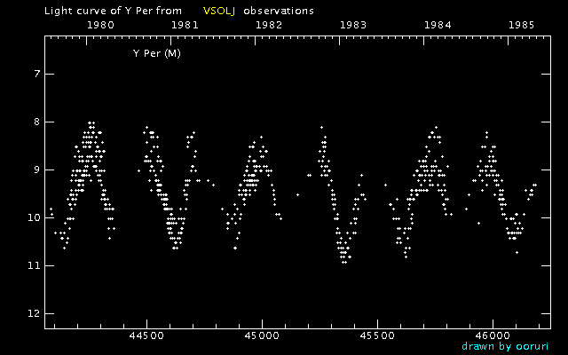 Light Curve of Y Per (Y Persei) from the VSOLJ database (1980-1984)