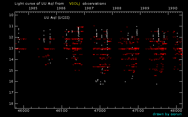 Light Curve of UU Aql (UU Aquilae) from the VSOLJ database (1985-1989)