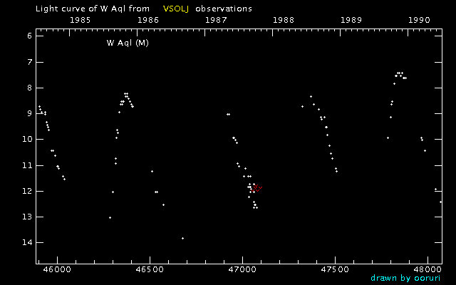 Light Curve of W Aql (W Aquilae) from the VSOLJ database (1985-1989)