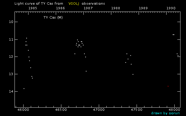 Light Curve of TY Cas (TY Cassiopeiae) from the VSOLJ database (1985-1989)
