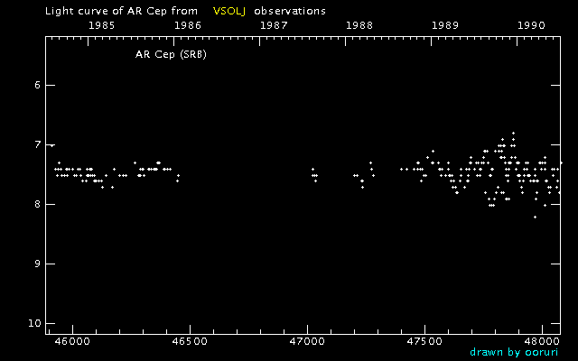 Light Curve of AR Cep (AR Cephei) from the VSOLJ database (1985-1989)