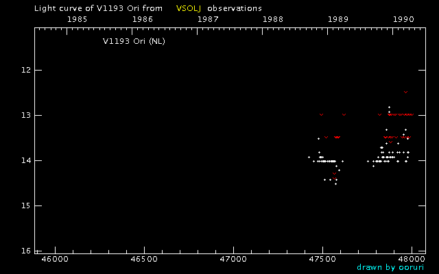 Light Curve of V1193 Ori (V1193 Orionis) from the VSOLJ database (1985-1989)