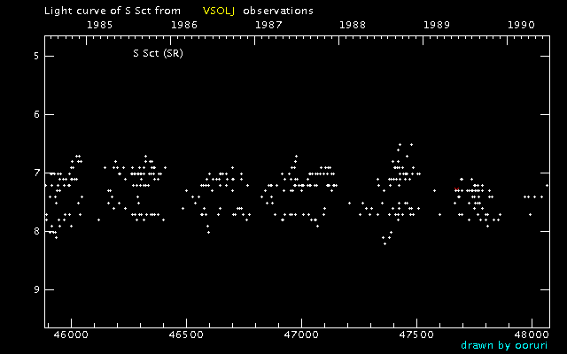 Light Curve of S Sct (S Scuti) from the VSOLJ database (1985-1989)