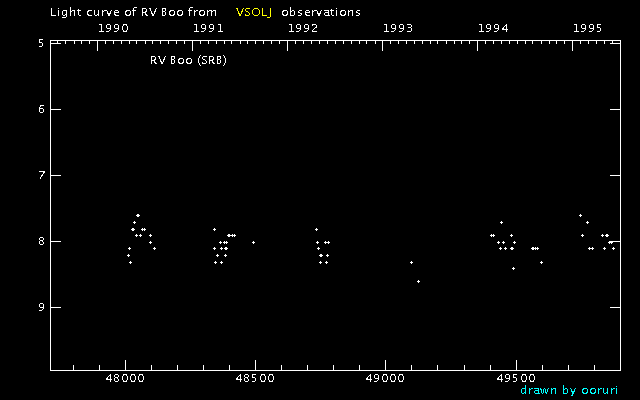 Light Curve of RV Boo (RV Bootis) from the VSOLJ database (1990-1995)