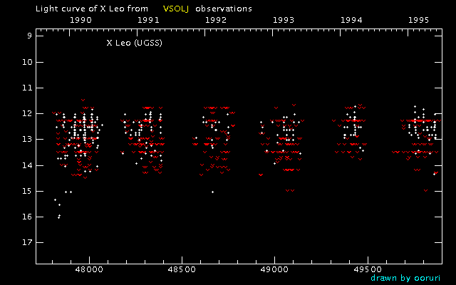 Light Curve of X Leo (X Leonis) from the VSOLJ database (1990-1995)