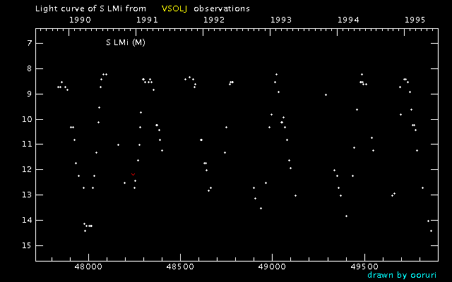 Light Curve of S LMi (S Leonis Minoris) from the VSOLJ database (1990-1995)