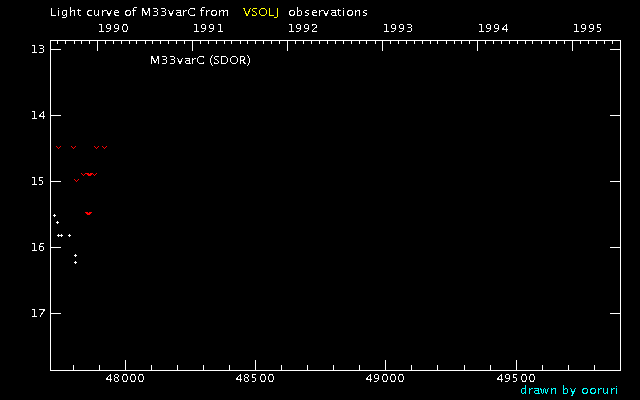 Light Curve of M33varC (M33varC) from the VSOLJ database (1990-1995)