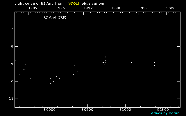 Light Curve of RS And (RS Andromedae) from the VSOLJ database (1995-1999)
