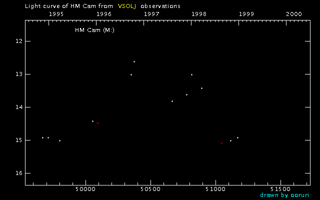 Light Curve of HM Cam (HM Camelopardalis) from the VSOLJ database (1995-1999)