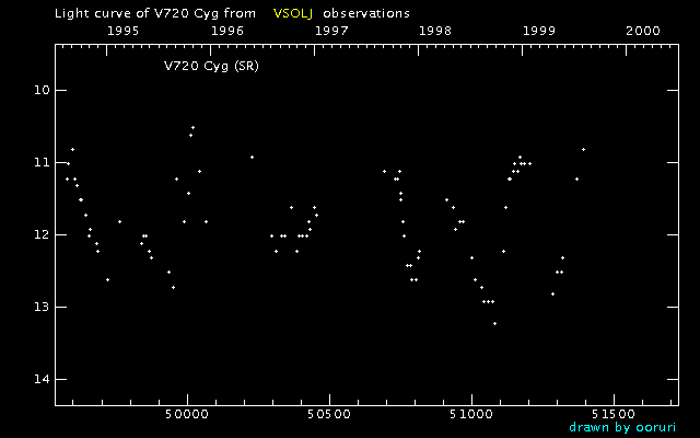 Light Curve of V720 Cyg (V720 Cygni) from the VSOLJ database (1995-1999)