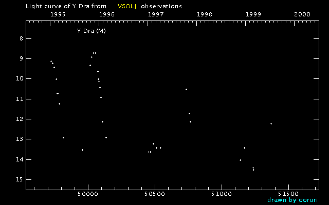 Light Curve of Y Dra (Y Draconis) from the VSOLJ database (1995-1999)