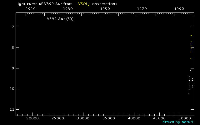 Light Curve of V399 Aur (V399 Aurigae) from the VSOLJ database (1900-1999)