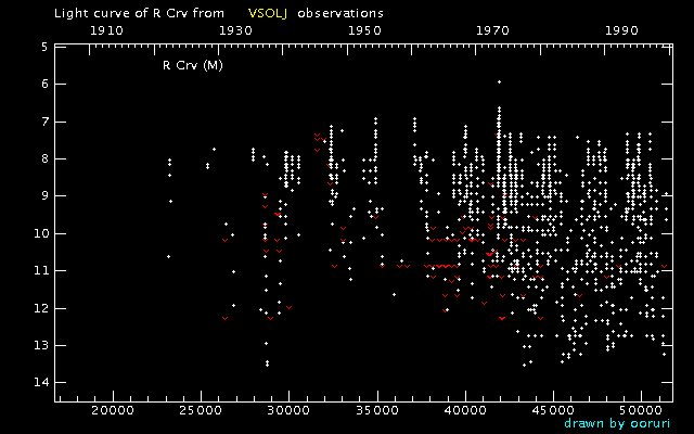 Light Curve of R Crv (R Corvi) from the VSOLJ database (1900-1999)