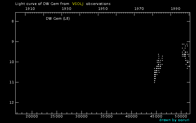 Light Curve of DW Gem (DW Geminorum) from the VSOLJ database (1900-1999)