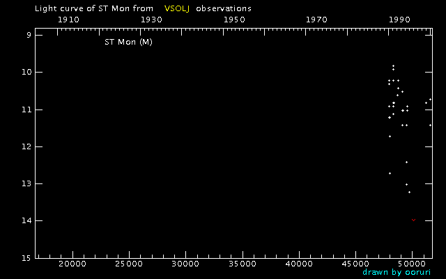 Light Curve of ST Mon (ST Monocerotis) from the VSOLJ database (1900-1999)