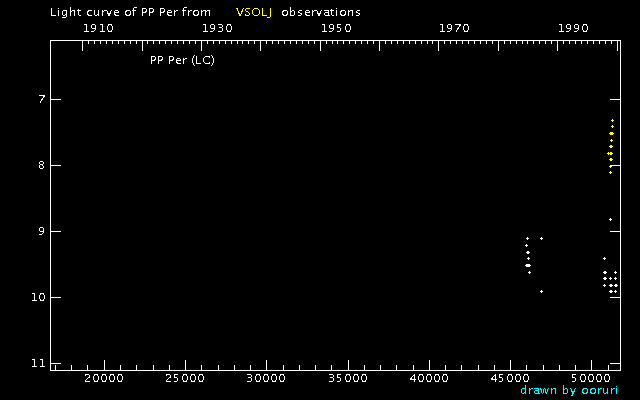Light Curve of PP Per (PP Persei) from the VSOLJ database (1900-1999)