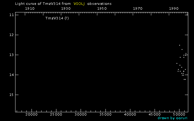 Light Curve of TmzV314 (TmzV314) from the VSOLJ database (1900-1999)