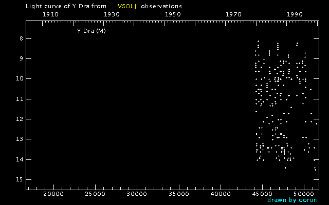 Light Curve of Y Dra (Y Draconis) from the VSOLJ database (1900-1999)