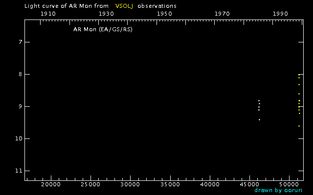 Light Curve of AR Mon (AR Monocerotis) from the VSOLJ database (1900-1999)